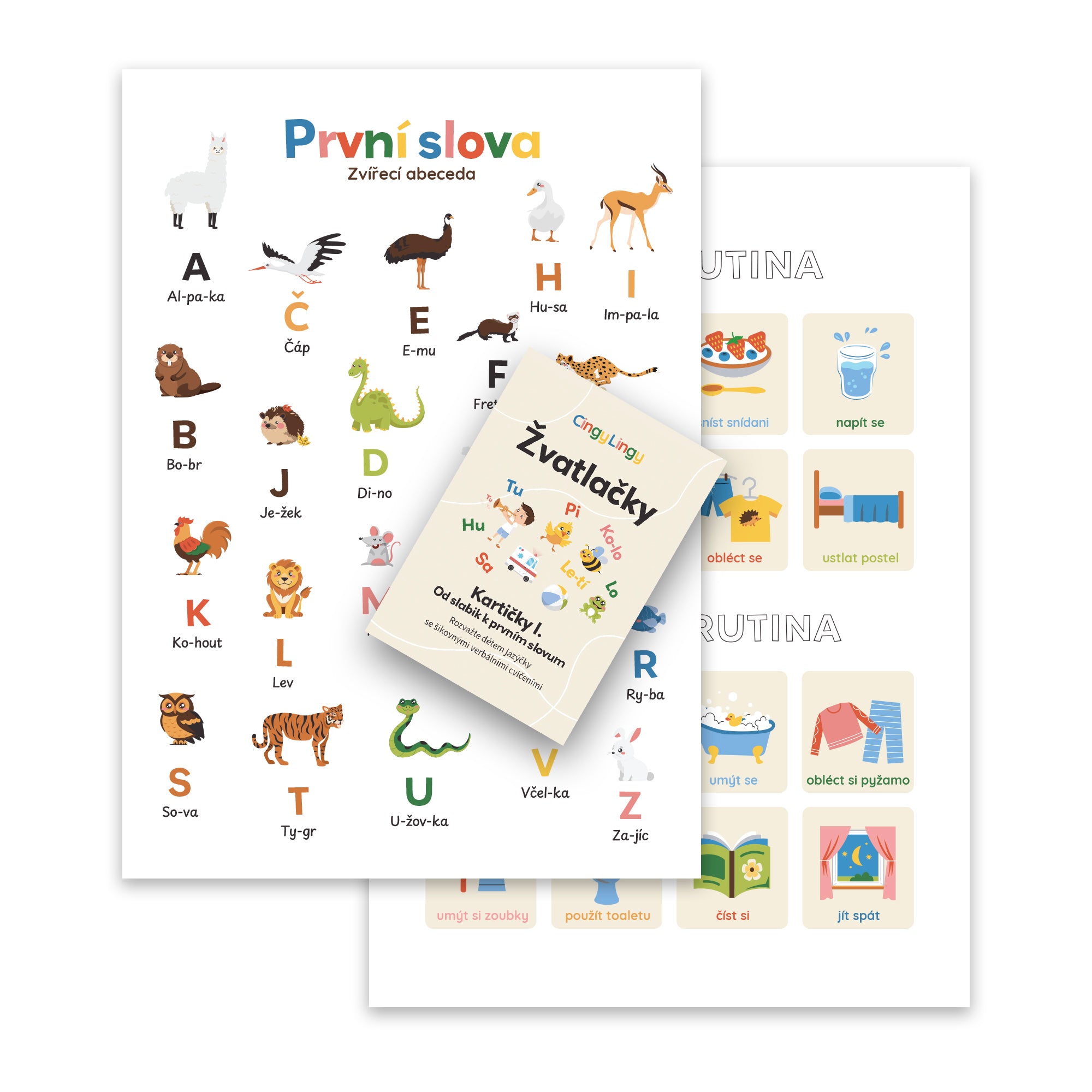 Balíček Žvatlačky I. & Plakát První slova – Abeceda věcí kolem nás