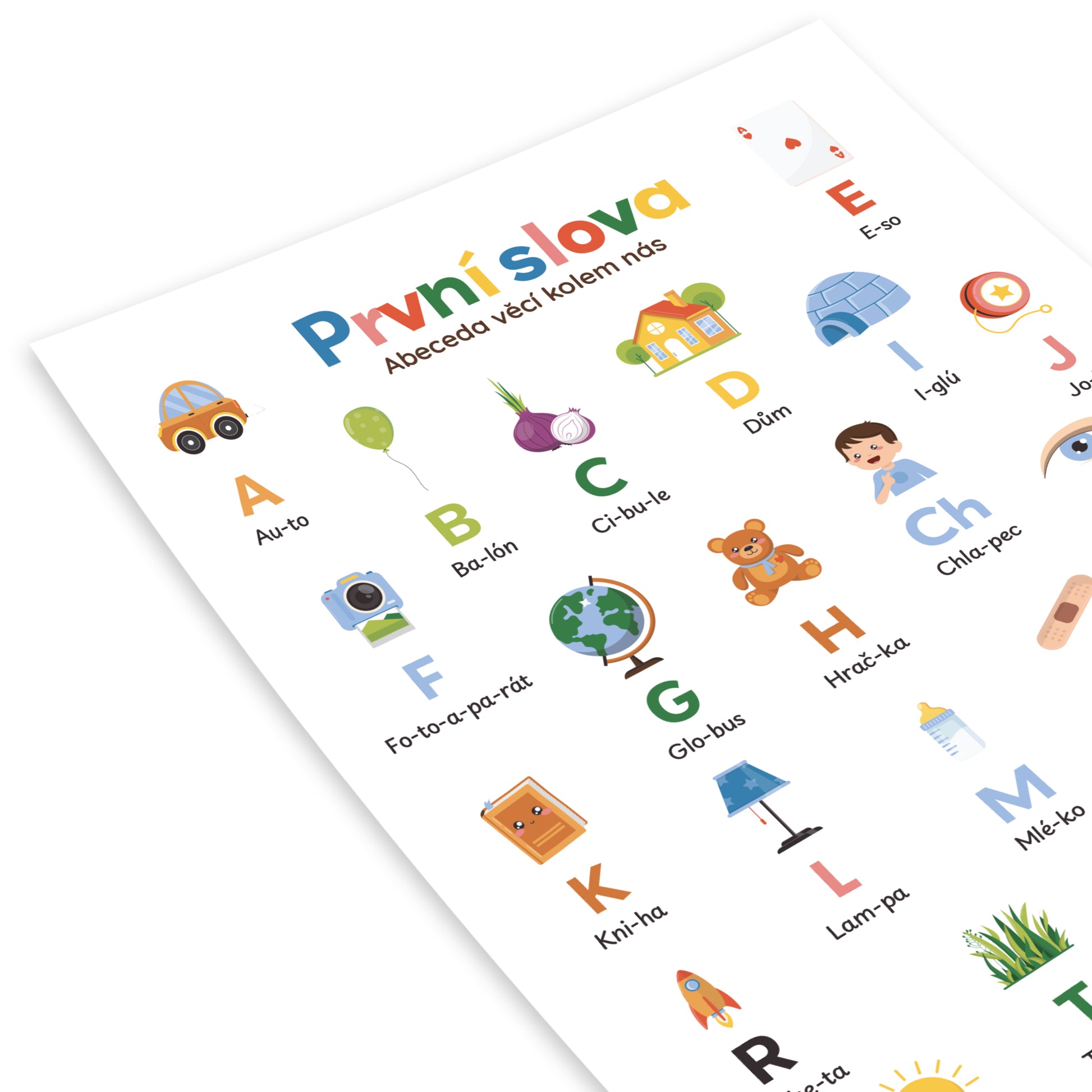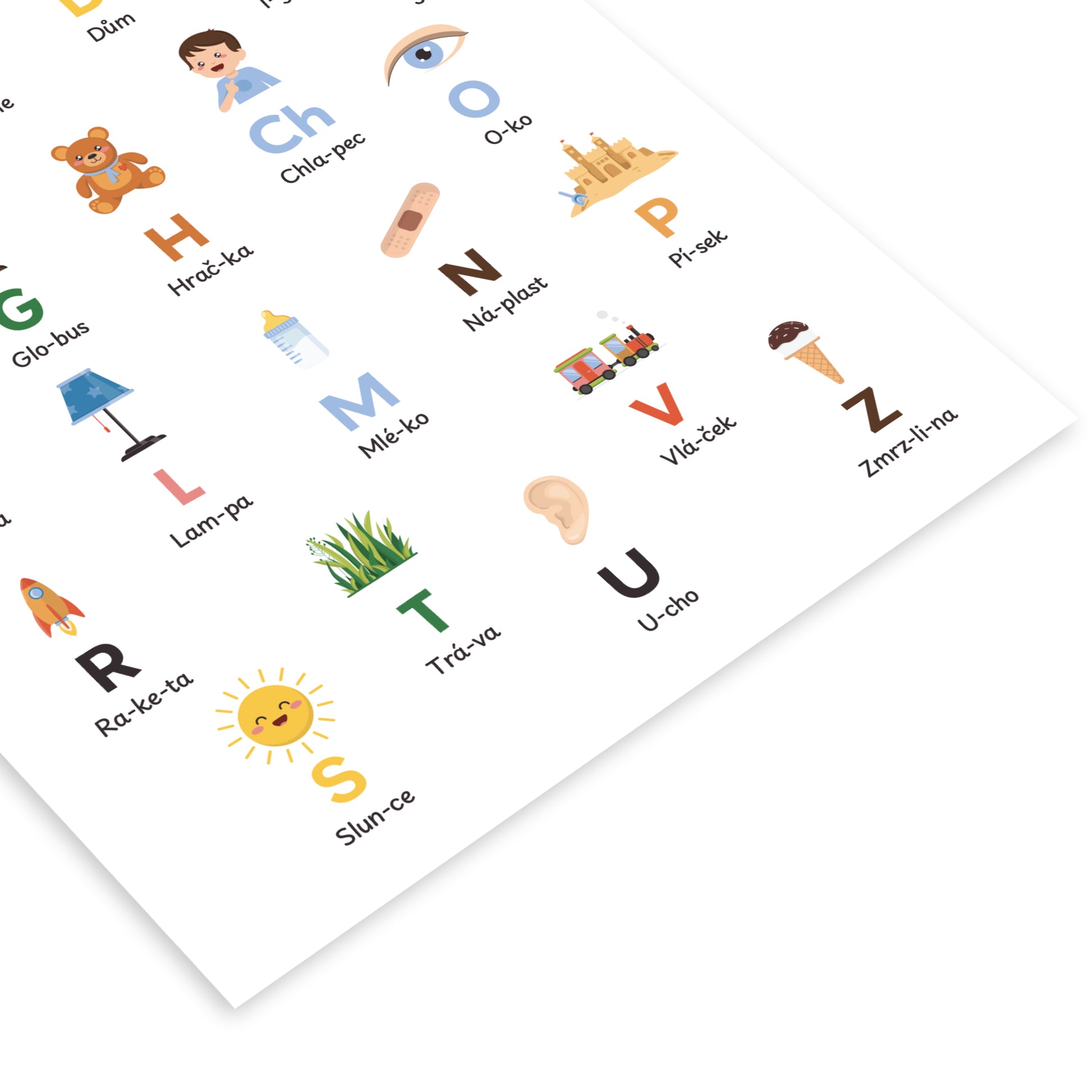 Každé písmeno abecedy je spojeno s obrázkem předmětu z každodenního života, což dětem usnadňuje zapamatování nových slov. Díky poutavým barevným ilustracím se učení slovíček stane vaší oblíbenou aktivitou. Stačí plakát pověsit na viditelné místo a trénování jazýčků může začít.