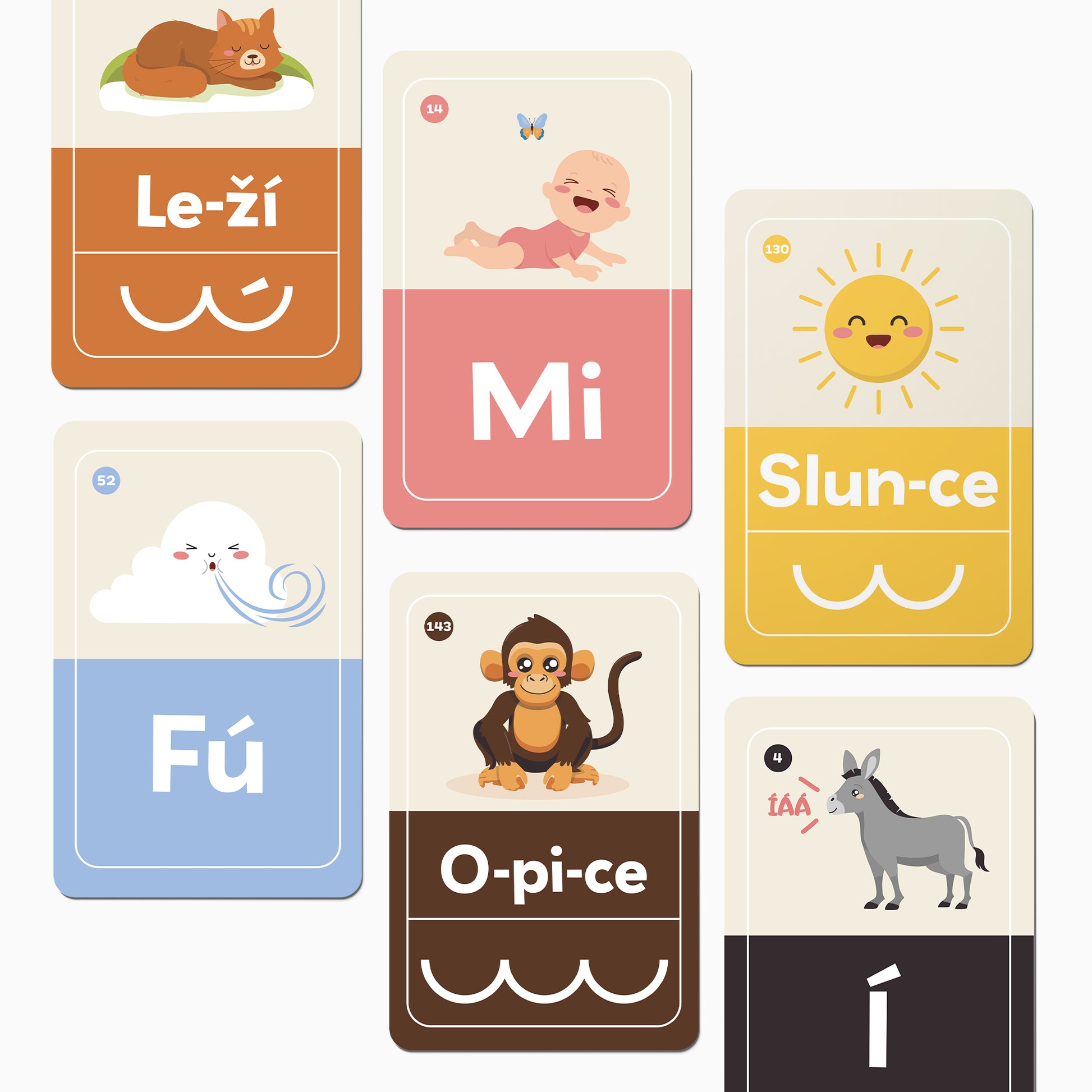 Kartičky I. – Od slabik k prvním slovům jsou navrženy pro děti, které ještě nemluví. Jde o základní sadu, kterou bude váš malý nemluvka pro rozvoj řeči potřebovat. Pomocí těchto kartiček se seznámí s prvními slabikami a slovy, a to v přesné posloupnosti všech důležitých hlásek a souhlásek. Díky pravidelnému procvičování prvních slabik pomůžete dětem postupně zvládnout jedno-, dvou- a trojslabičná slova.